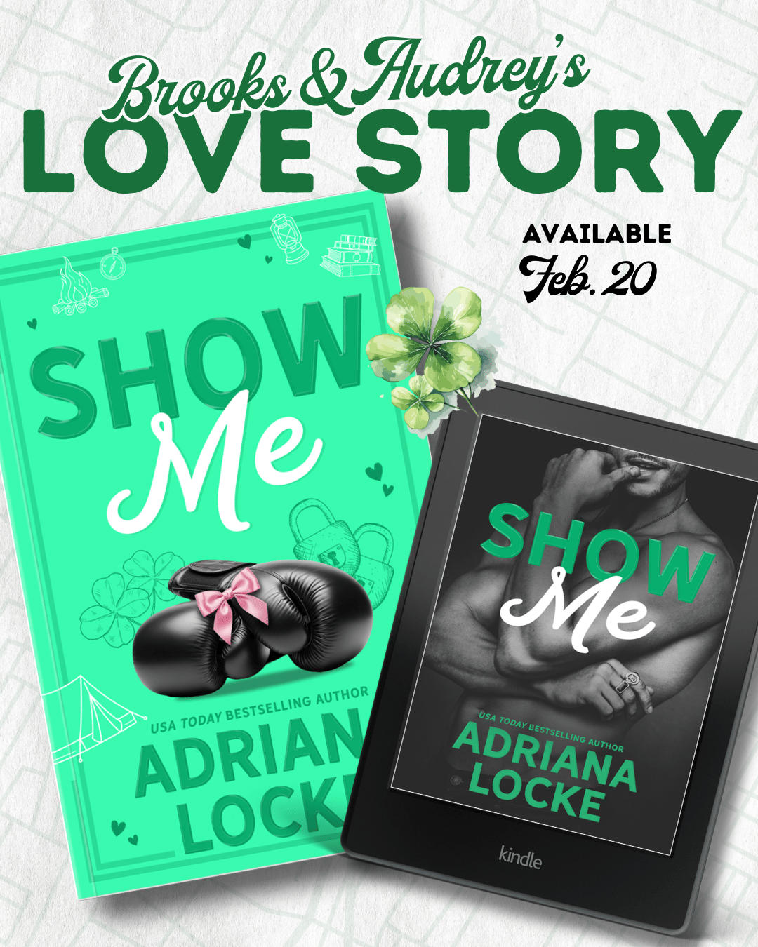 We are in the final countdown to SHOW ME, Reader! Can you hear me squealing? 🤩 My beta and editor notes for this one have been a writer's dream. These women have been with me for a long time (years!), so when they say that this is one of the funniest, swooniest, but heartstrings-pulling books I've ever written ... it's hard not to believe. I mean, I love it endlessly, so I'm happy to believe it. I've been cleaning up this book for you, as well as doing a hundred other things. We relaunched Wherever It Leads with a brand new cover (did you see? I'll post it below, if not!), the audio for Try Me is now available, and a new cover was finished for my next project (you'll see it soon!). February is also the Locke Birthday Month with 3 of my 4 sons celebrating. My oldest and youngest were this week, so it's been a few days of endless cheesecake, red velvet cake, and the family favorite yellow cake with chocolate icing. 🍰 Such a classic. LL#3 will have his turn to birthday it up on the 17th, so we have a couple of weeks to settle our tummies and prepare for another cake fest. haha I'm going to drop a few exciting things below, including: 💚 the preorder for SHOW ME 📖 8 signed paperback giveaway with 7 of my favorite authors (!!) ⛵️ the new cover for WHEREVER IT LEADS 🎧 2 free audiobooks just for you! (These links do expire, so grab them now.) 🎀 a few giveaways my followers have posted on Instagram for signed paperbacks of PLAY ME and TRY ME Have a super weekend, friends! Love you. Drink your water. xo